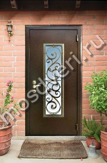 Одностворчатая металлическая дверь со стеклом и ковкой с порошковым окрасом