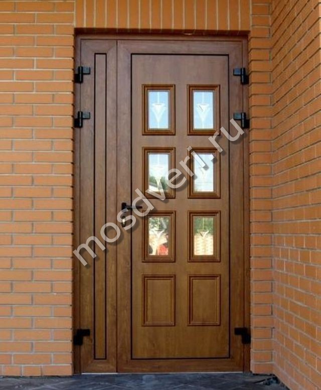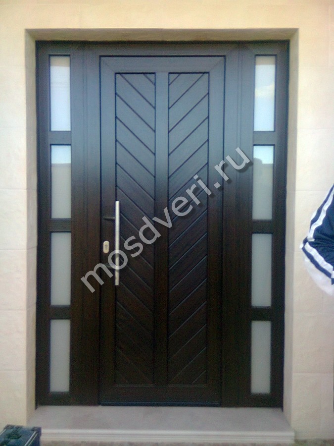 В металлических входных дверях мы используем только безопасное стекло - триплекс или закаленное. Такое стекло выдерживает удары и при повреждении не образует острых осколков. Для частного дома рекомендуем модели с энергосберегающим стеклопакетом - он сохраняет тепло внутри. Стальная рама вокруг стекла имеет декоративное напыление под бронзу или хром. Уличная дверь со стеклом может комплектоваться зеркалом с внутренней стороны. Цена зависит от типа стекла и размера вставки.