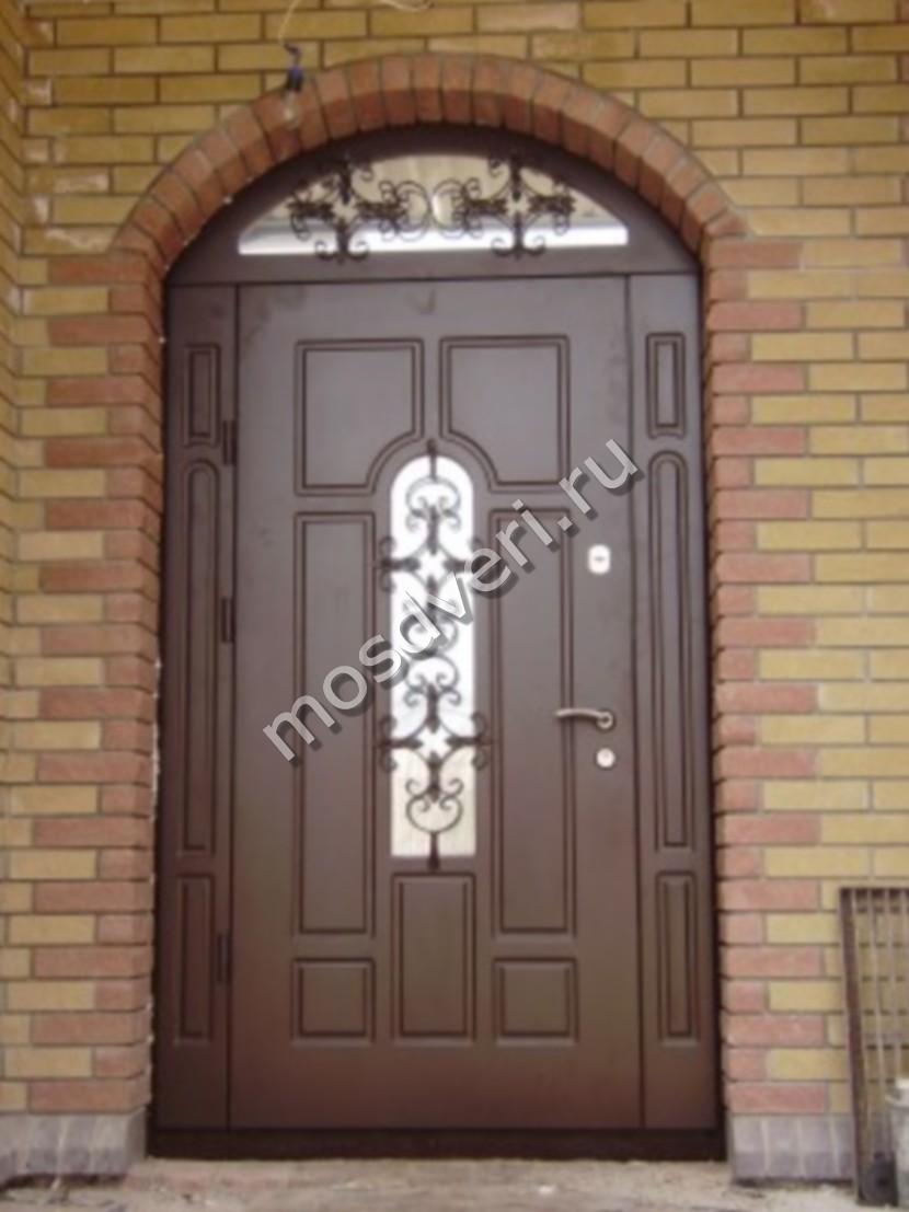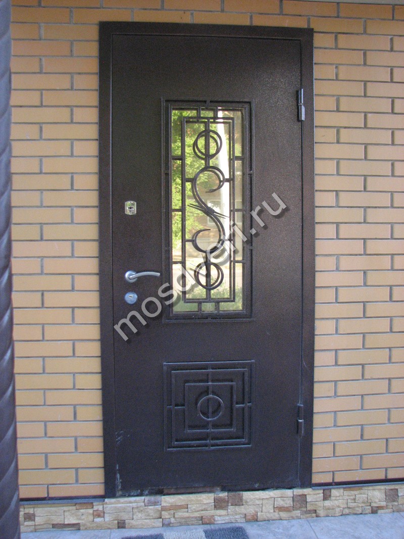 Металлическая входная дверь со стеклом и ковкой и порошковым окрасом с двух сторон