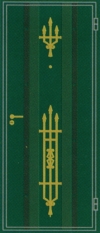 • Декоративные элементы. Дополнительно полотно можно оснастить зеркалом, стеклянными вставками, элементами ковки, оригинальными витражами.